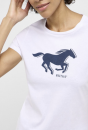 Toto tričko vyniká nápadným potiskem v tmavě modré barvě. Díky měkké bavlně má tričko vynikající odolnost vůči nošení. Perfektní pro uvolněný ležérní vzhled s džínami a teniskami.
