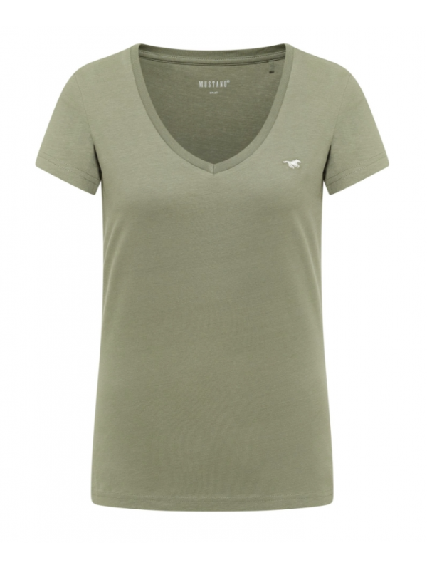 přizpůsobený střih slim fit / organická 100% bavlna / výstřih do V / barva oliva