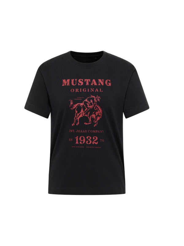 Dámské triko v černé barvě / červený potisk s logem MUSTANG