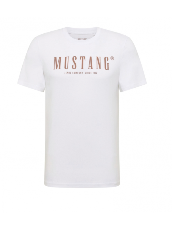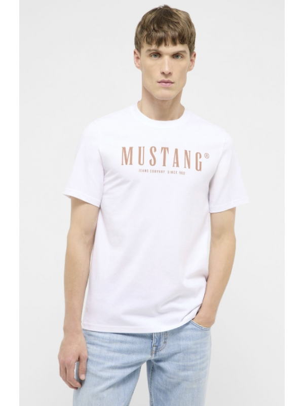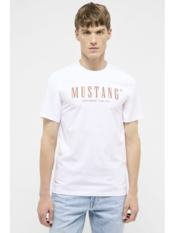 Pánské triko v čistě bílé barvě a logem MUSTANG