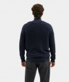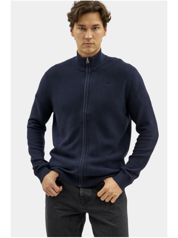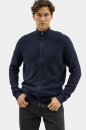 Lehký pánský svetr na zip v tmavě modré barvě, s malým vyšitým koníkem na prsou.