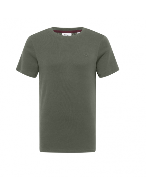 Jednoduché tričko s kulatým výstřihem, malé logo koníka vyšité na prsou.