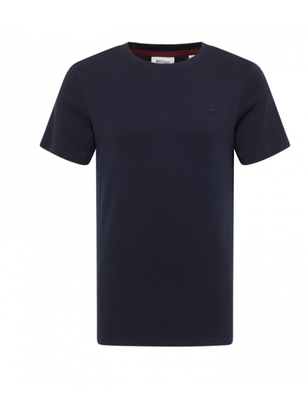 Jednoduché tričko s kulatým výstřihem, malé logo koníka vyšité na prsou.